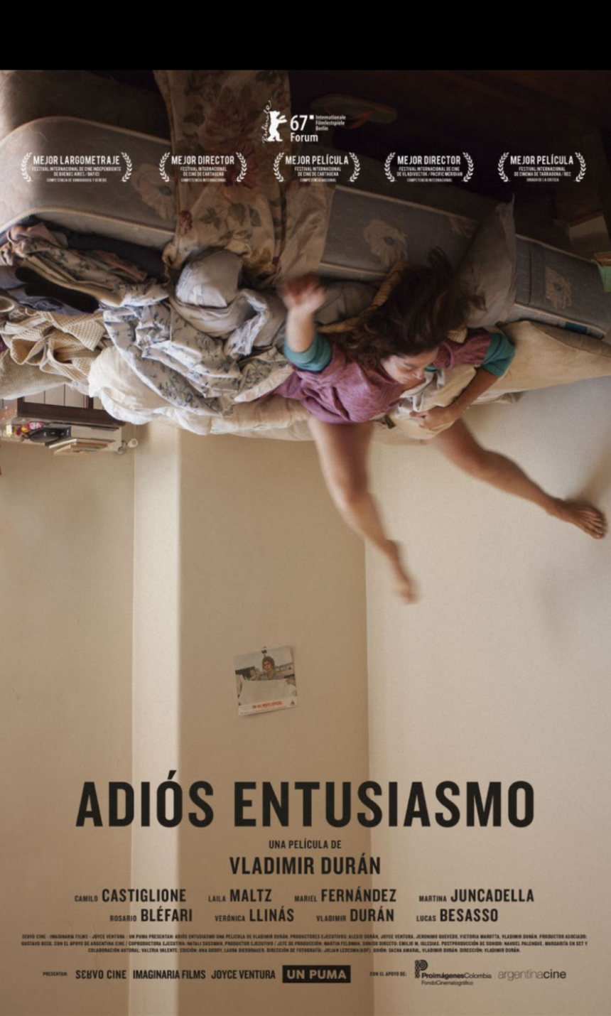 ADIÓS ENTUSIASMO abrió en el Festival de cine de Berlín y ganó el premio al Mejor Largometraje en la Competencia de Vanguardia y Género del BAFICI - Festival de Cine Independiente de Buenos Aires. También ganó mejor película en el 2017, en el Festival Internacional de Cine de Cartagena de Indias – FICCI, la categoría de cine colombiano y Vladimir triunfó como mejor director en la competencia internacional del FICCI, al igual que mejor director en el Festival de Vladivostock.