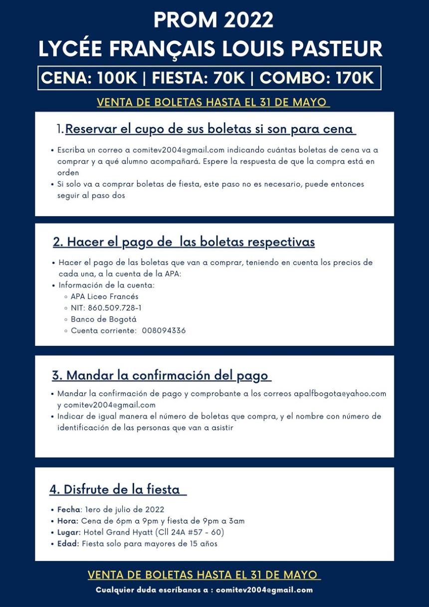 NOTA: la CENA debe reservarse en el correo comitev2004@gmail.com indicando el número de boletas a comprar y a qué alumno acompañará.