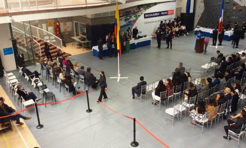La Ceremonia de entrega del Baccalauréat 2022 se desarrolló el sábado 9 de julio de 2022, de 10h a 12h en el gimnasio del Liceo Francés, en presencia del embajador de Francia en Colombia, SE Frédéric Doré, el Presidente del Consejo de Administración, Sr. Javier Díaz de Miranda, el Presidente de ASALF, Sr. Guillermo Perdomo y una delegación de la Alcaldía de Chía. Un evento organizado por la Sra. Claudia Mattana de la Secretaría de Secundaria.