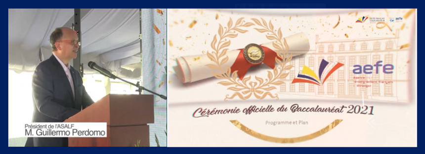 Chers bacheliers : portez toujours avec fierté le drapeau de l’education que vous avez reçu à l’intérieur de ces murs. Soyez fidèles aux principes de Liberté, Égalité et Fraternité que vous ont été inculqués et aux valeurs républicaines et humanistes que vous feront reconnaître partout où vous irez, comme des anciens élèves du Lycée Français Louis Pasteur.