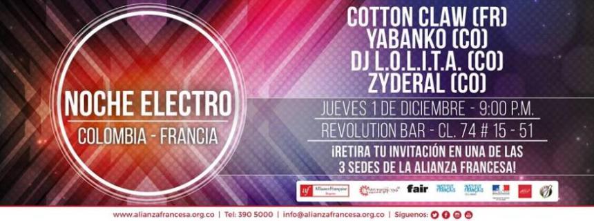 La Alianza Francesa te invita a disfrutar de esta fiesta de música electrónica colombo-francesa como cierre de su programación cultural 2016, acompañada de DJ's franceses y colombianos; Cotton Claw (Francia), DJ Yabanko (Colombia), DJ L.O.L.I.T.A (Colombia), DJ Zyderal (Colombia/Argentina).