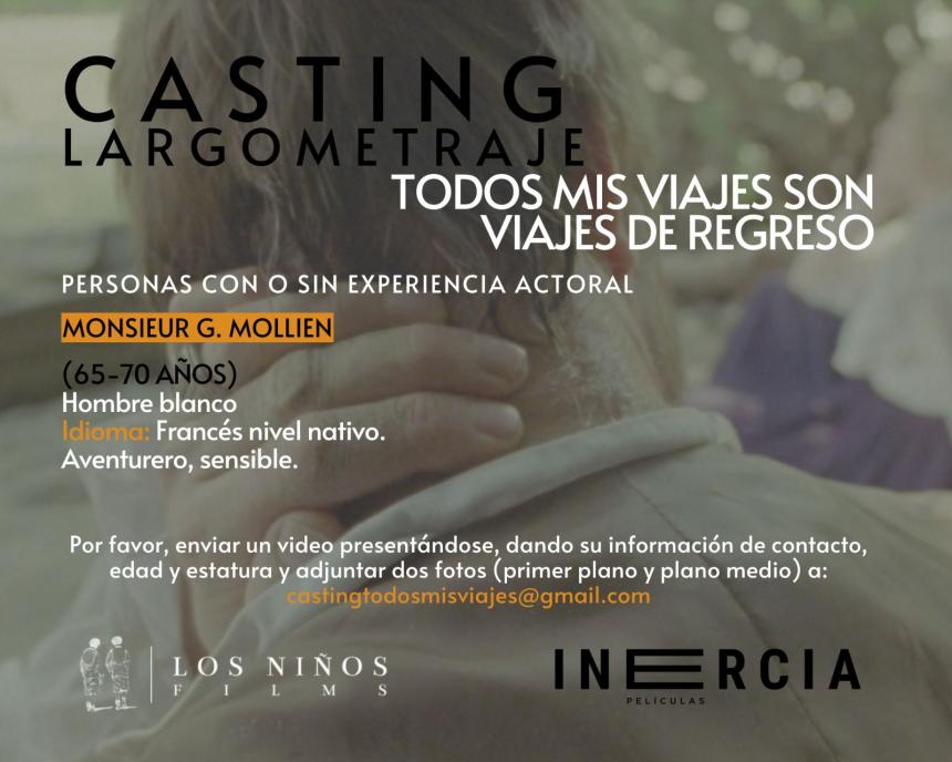 El coordinador de Casting de la película "Todos mis viajes son viajes de regreso", dirigida por Manuel Ponce De León. Está en el proceso de casting para esta película, la cual es producida por LOS NIÑOS FILMS, una casa productora reconocida por haber producido el largometraje "LAPU", estrenado mundialmente en la Competencia Oficial de Documentales del Sundance Film Festival, y cuyo estreno europeo tuvo lugar en la Selección Oficial de Forum en la 69ª edición de la Berlinale.