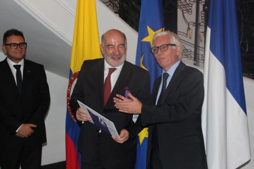 Le 30 novembre, Monsieur l’Ambassadeur de France en Colombie Jean-Marc Laforêt a remis les palmes académiques à Messieurs Diego CAICEDO et Fabian SANABRIA. M.Sanabria a également reçu l’Ordre national du Mérite.