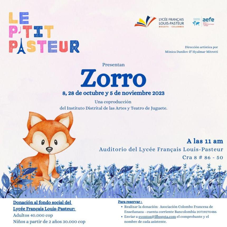 El lanzamiento se hará con la obra "ZORRO", un show de títeres y actores, que cuenta la historia de Zorro, quien vive con una familia humana y se cree humano. Las mascotas se ponen celosas... ¡Vengan a descubrir con sus hijos qué le sucederá a este tierno personaje!