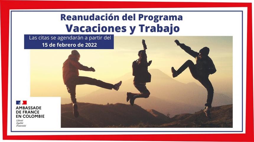 La Embajada de Francia en Colombia informa que reactiva el programa Vacaciones-Trabajo a partir del 15 de febrero de 2022 (citas a partir de ese día).