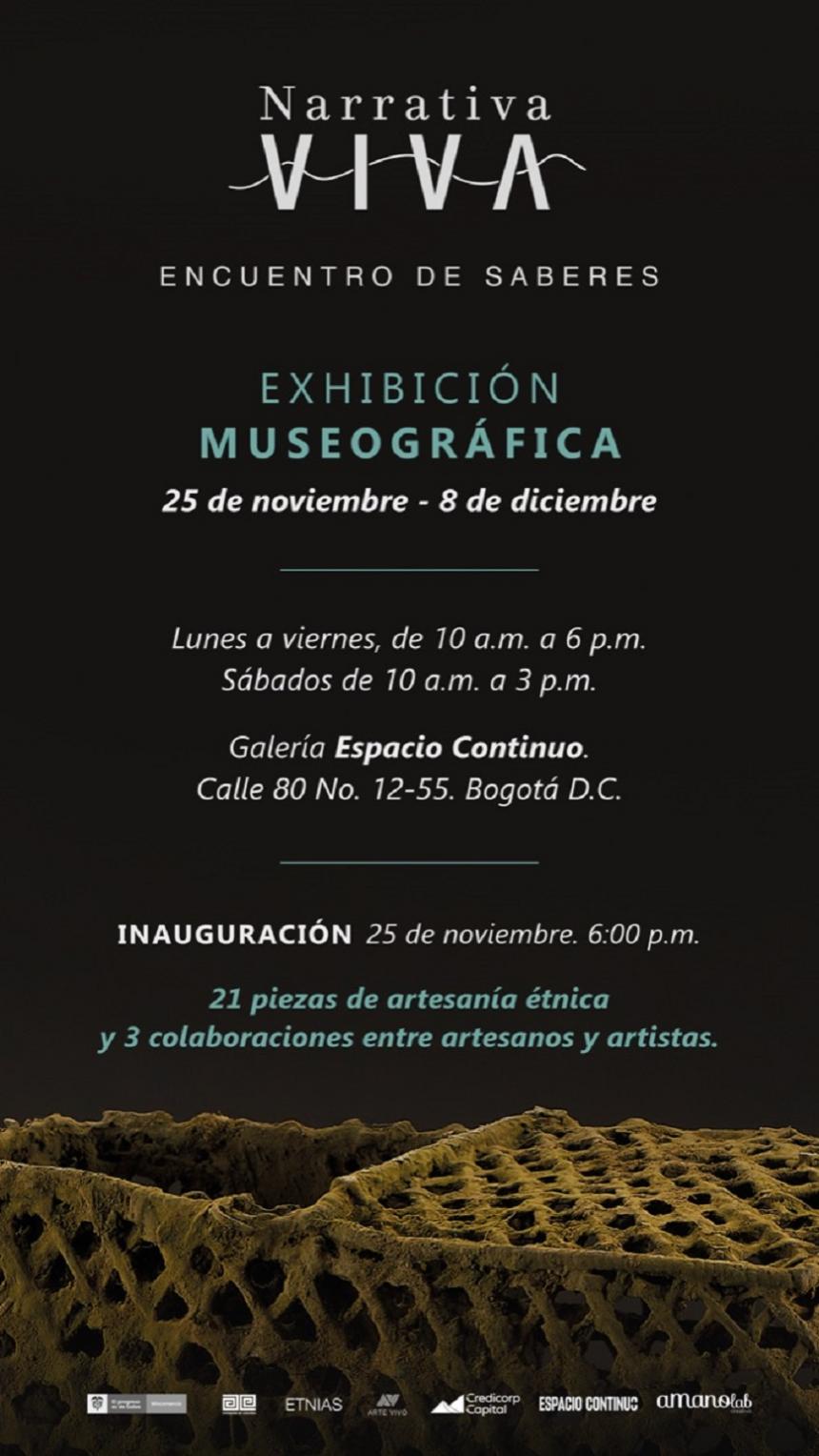 Invitación a la exposición "Narrativa Viva: Encuentro de saberes", organizada desde Artesanías de Colombia, por el exalumno de la promoción 2006, líder de diseño del programa de atención a población étnica, Iván Rodríguez.