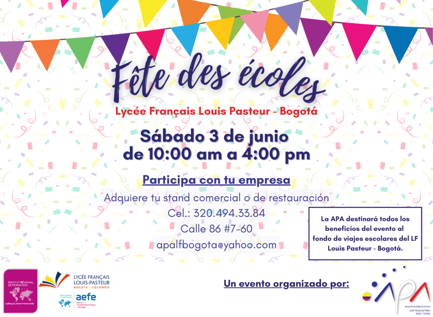 Sábado 3 de junio - 10:00 am a 4:00 pm - Lycée Français Louis Pasteur de Bogotá, Calle 86 # 7 - 60