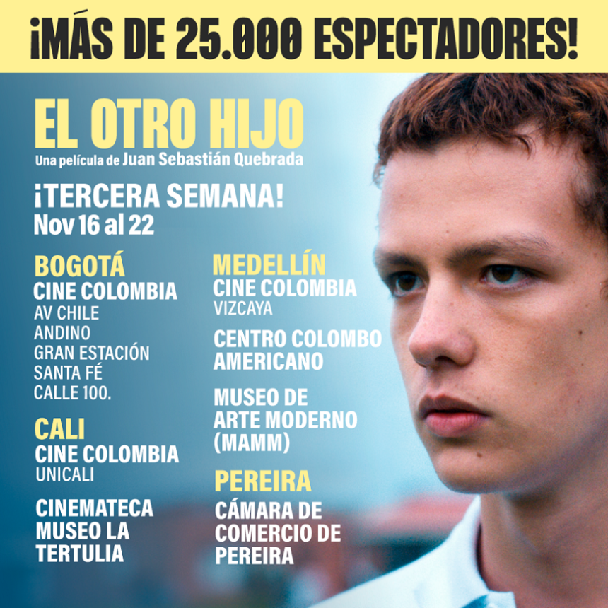 Más de 25.000 espectadores vieron la película colombo-francesa en sus primeras dos semanas, la cual sigue presente en 4 ciudades. No se pierdan la película de @juansebastianquebrada de la que todo el mundo está hablando en #Bogotá, #Medellín, #Cali y #Pereira.