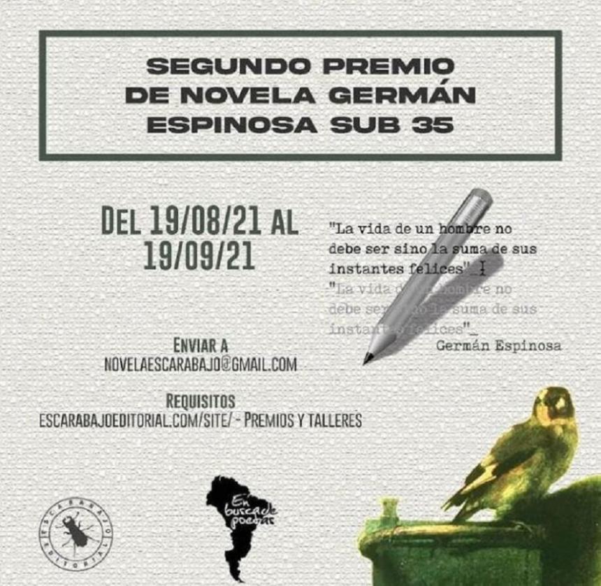 Te invitamos a participar en el II concurso de novela sub 35 - Colombia, creado en honor a uno de nuestros novelistas más aclamados, Germán Espinosa Villareal. La obra elegida será publicada con Escarabajo Editorial.