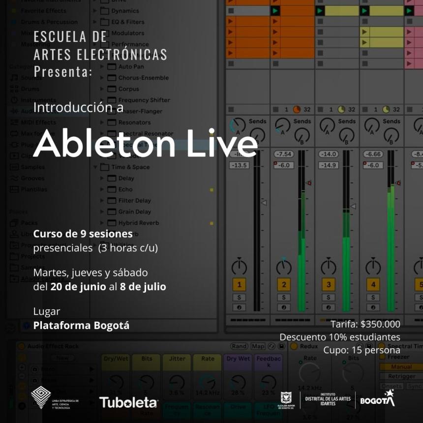 Diana Medina Prieto, exalumna del Liceo Francés Louis Pasteur, dictará el curso Introducción a Ableton Live, el cual hace parte de la oferta de cursos de Arte, Ciencia y Tecnología de la Escuela de Artes Electrónicas.