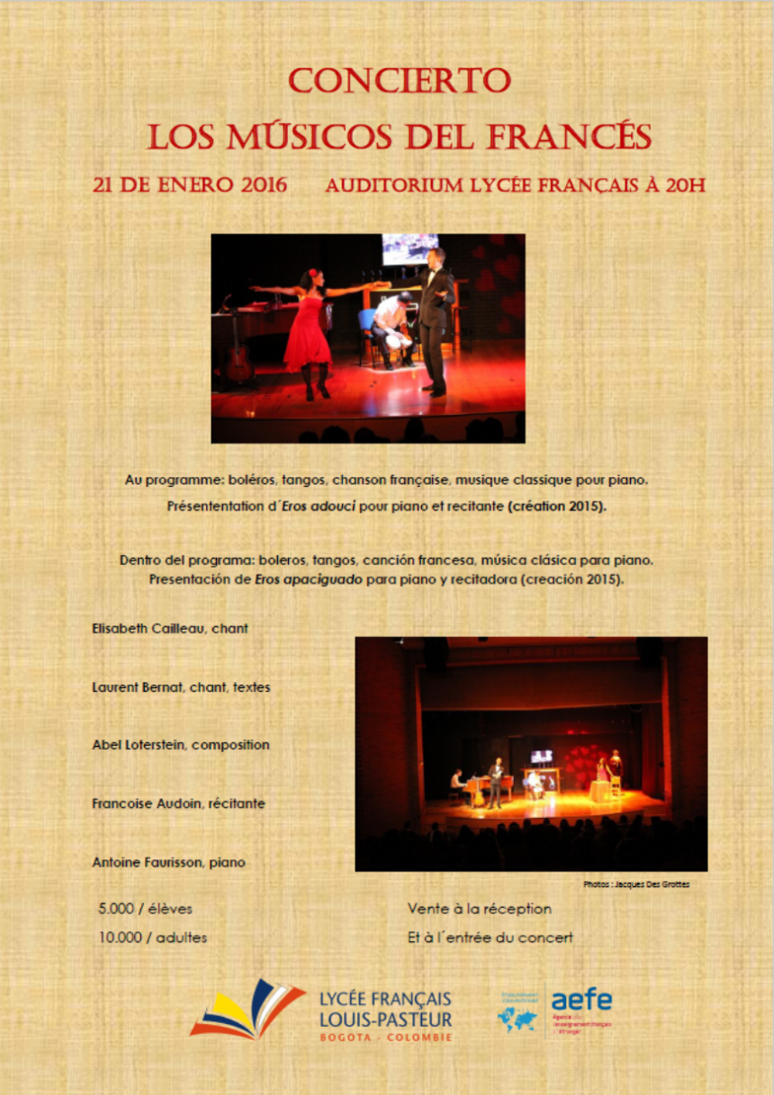 Los Músicos del Francés es un conjunto musical fundado en 2001 por Jean- François Gérard y Laurent Bernat que reagrupa músicos con un nivel de formación profesional. Son profesores del Liceo Francés de Bogotá, padres de alumnos o exalumnos. Dentro de sus aportes, en años anteriores, podemos recordar su trabajo en la obra L'Opéra de quat'sous realizada con el grupo de teatro del Liceo en el año 2004.