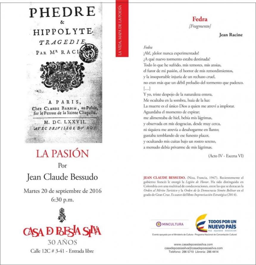 En el marco de La Vida, Mapa de la Poesía, el pasado 20 de septiembre, Jean-Claude Bessudo (promoción 1964) habló sobre La Pasión en la poesía, la obra maestra del dramaturgo francés Jean Racine que trata del dolor por un amor que nunca fue correspondido.