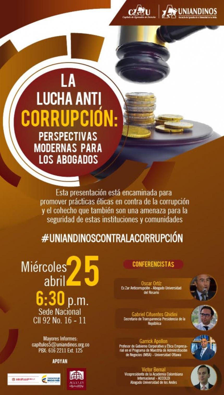 Otros conferencistas: Óscar Ortiz, ex zar anticorrupción; Gabriel Cifuentes, secretario de transparencia de la vicepresidencia de la República y Garrick Apollon, profesor de gobierno corporativo y ética empresarial de la universidad de Ottawa.