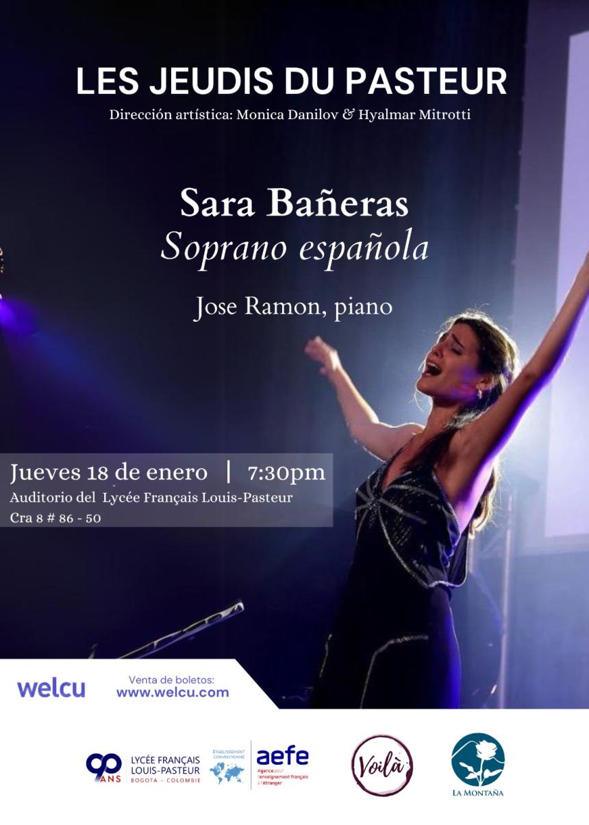 La gran Soprano española, Sara Bañeras, llega a Colombia en la franja cultural de LES JEUDIS DU PASTEUR para un único recital donde interpretará grandes piezas de Ópera y Zarzuela. Esta gran artista se destaca por su sensibilidad musical, así como por una gran solidez técnica y una poderosa presencia escénica.