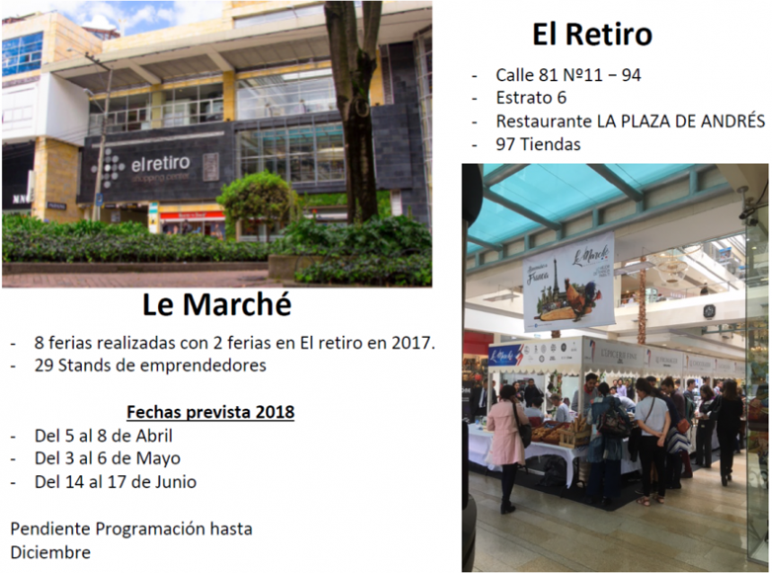 El grupo Le Marché constituido por varios productores e importadores franceses y belgas está buscando artesanos, productores o importadores para participar en un mercado de cuatro (4) días en el centro comercial el Retiro en abril, mayo y junio (¡y de pronto más!).